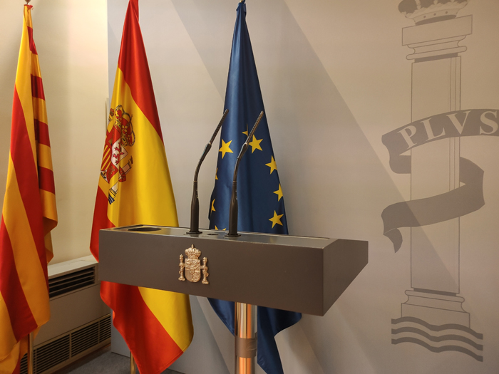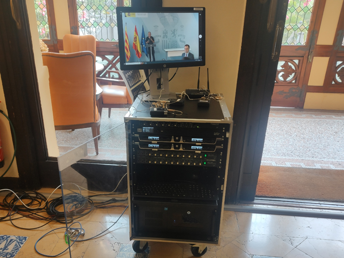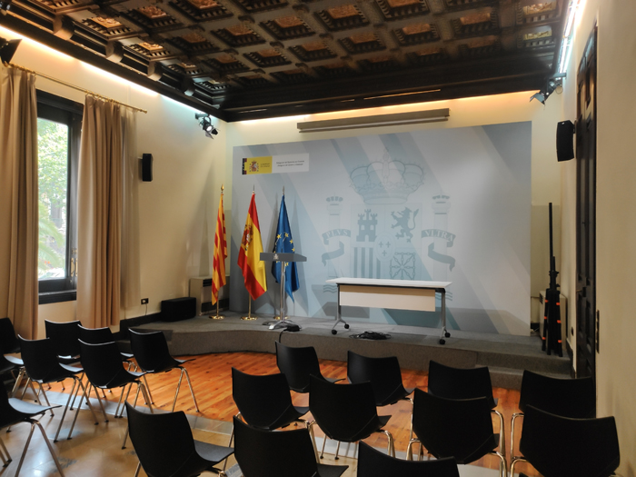 Equipos en Sala de Prensa para Streaming. La delegación del gobierno en Barcelona nos contactó para renovar la instalación audiovisual de la Sala de Prensa. El objetivo era el de modernizarla y transformarla en una Sala de Prensa con la que poder emitir en Streaming los diferentes eventos