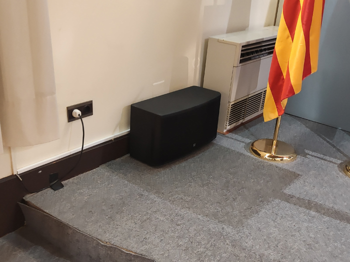 Con el objetivo de obtener la mejor calidad de sonido se instalaron los equipos de la serie LD CURV500 de la marca LD Systems. Este conjunto está formado por el subgrave LD CURV500 ISUB, 6 altavoces satélites LD CURV500 S2, repartidos en dos puntos de sonido, junto con dos SMARTLINK LD CURV500 SLA y sus respectivos soportes de pared.
