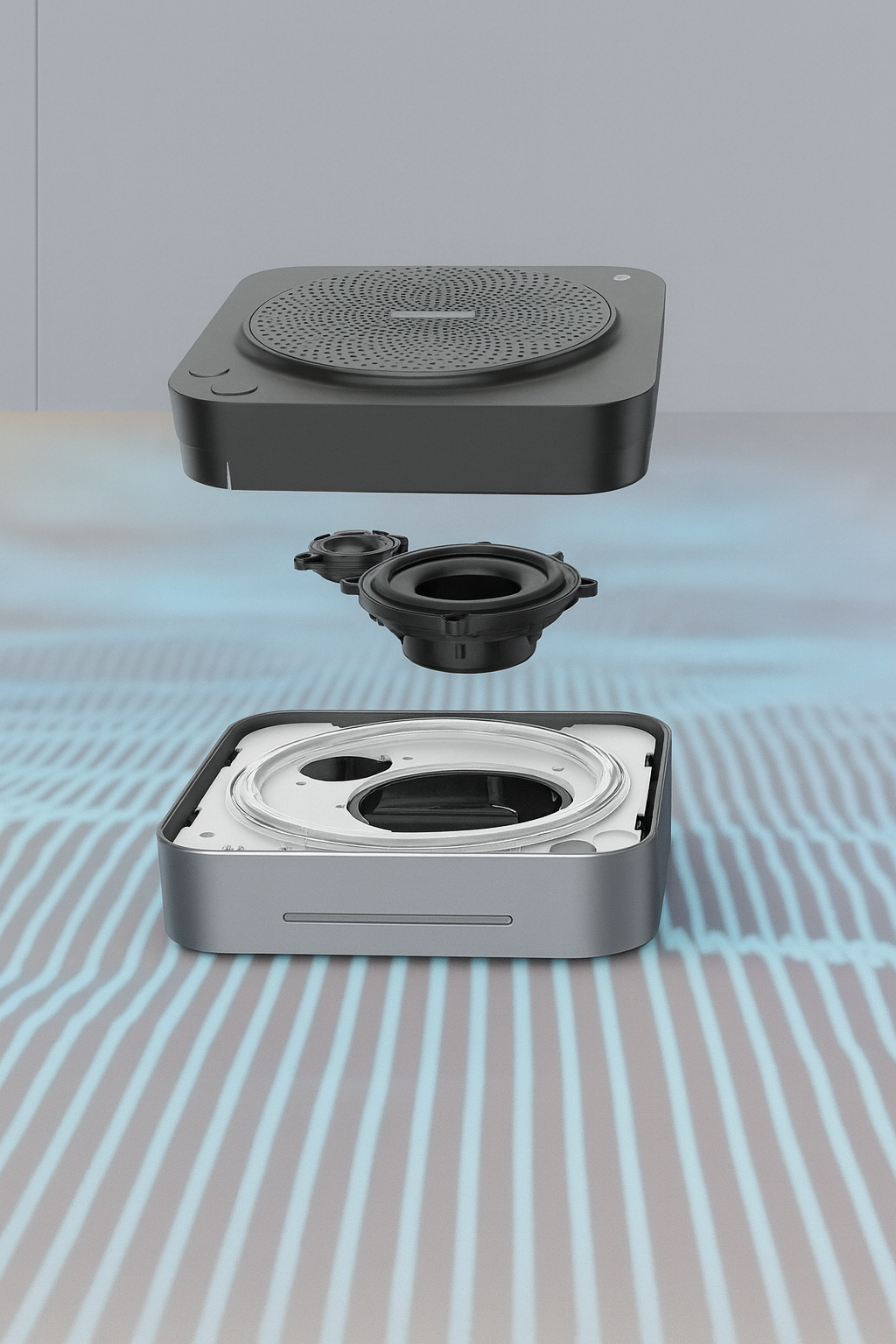 Para respetar esta versatilidad, la instalación de sonido se divide en dos zonas independientes: cuando se usa completo, ambas trabajan en conjunto, y al dividirlo, basta con desactivar la zona secundaria para que la principal mantenga todas sus prestaciones.