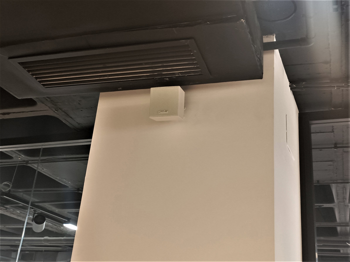 En el primer espacio se instalaron 8 altavoces Ecler Ambit 103 de color blanco.