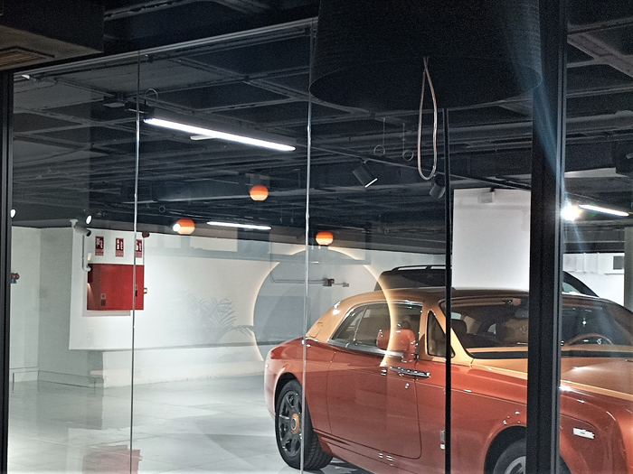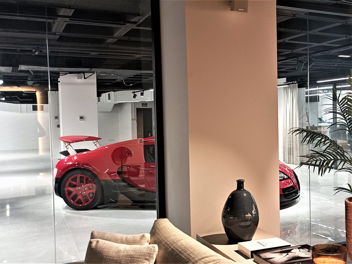 Este concesionario cuenta con dos espacios. El primero, es una gran zona donde están expuestos los coches. Y una segunda zona de descanso, con mesa de billar y bar, para atender a los clientes y poder estar cómodamente en un ambiente relajado.