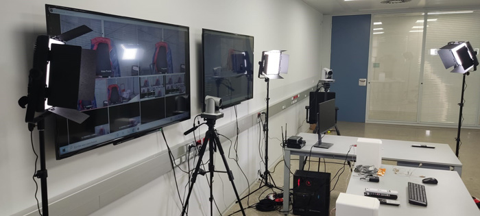 Los equipos profesionales de video fueron dos cámaras PTZ Minrray Full HD de 60FPS con sus respectivos trípodes, pues la propiedad prefirió que la sala para formación por videoconferencia fuera móvil y poder adaptarla así a cada situación. Además se diseñaron según las necesidades de la propiedad varias configuraciones para las diferentes situaciones.