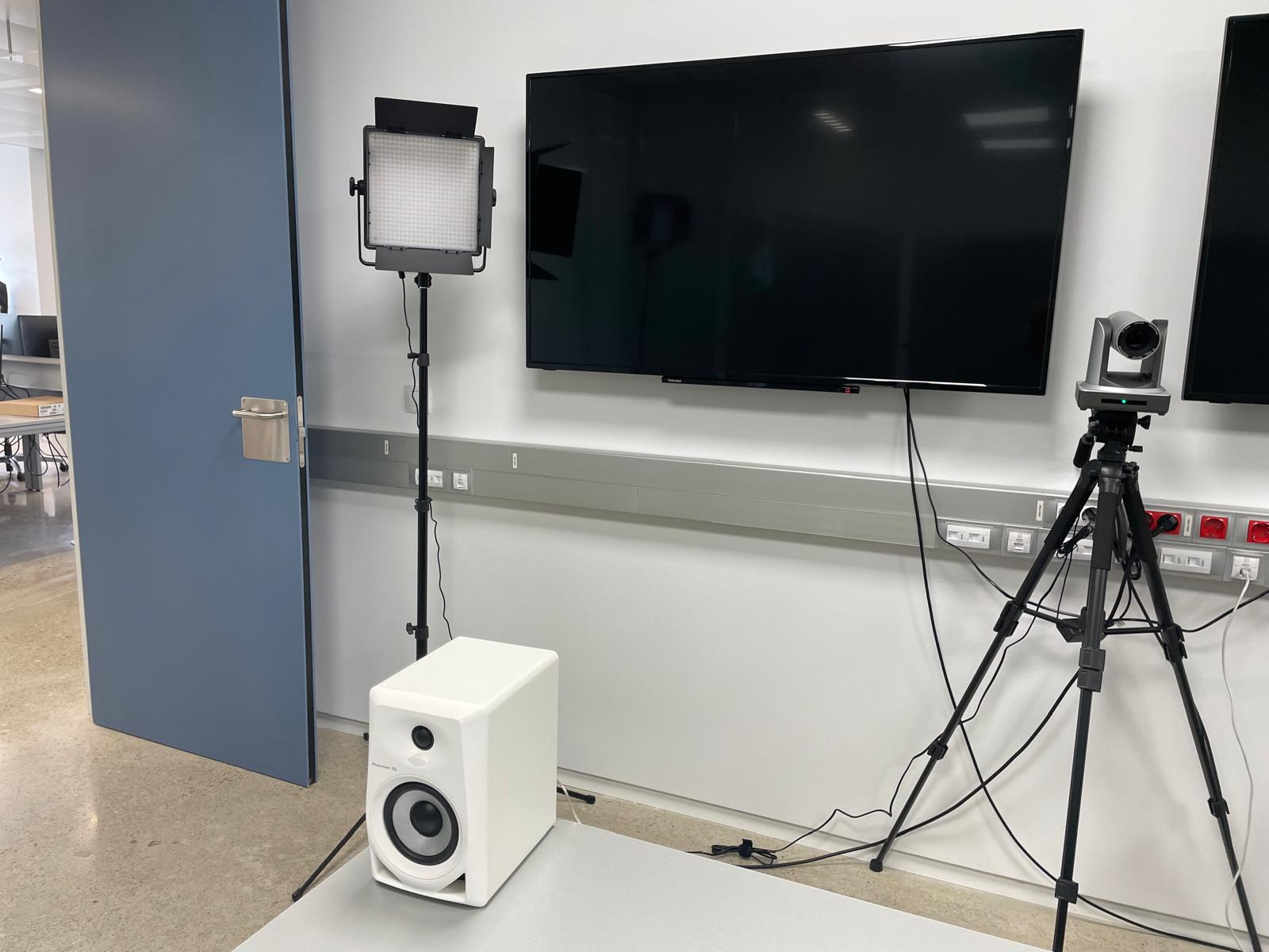 Por otra parte, para reproducir el audio de las videoconferencias se instalaron dos altavoces de estudio autoamplificados Pioneer DM-40.