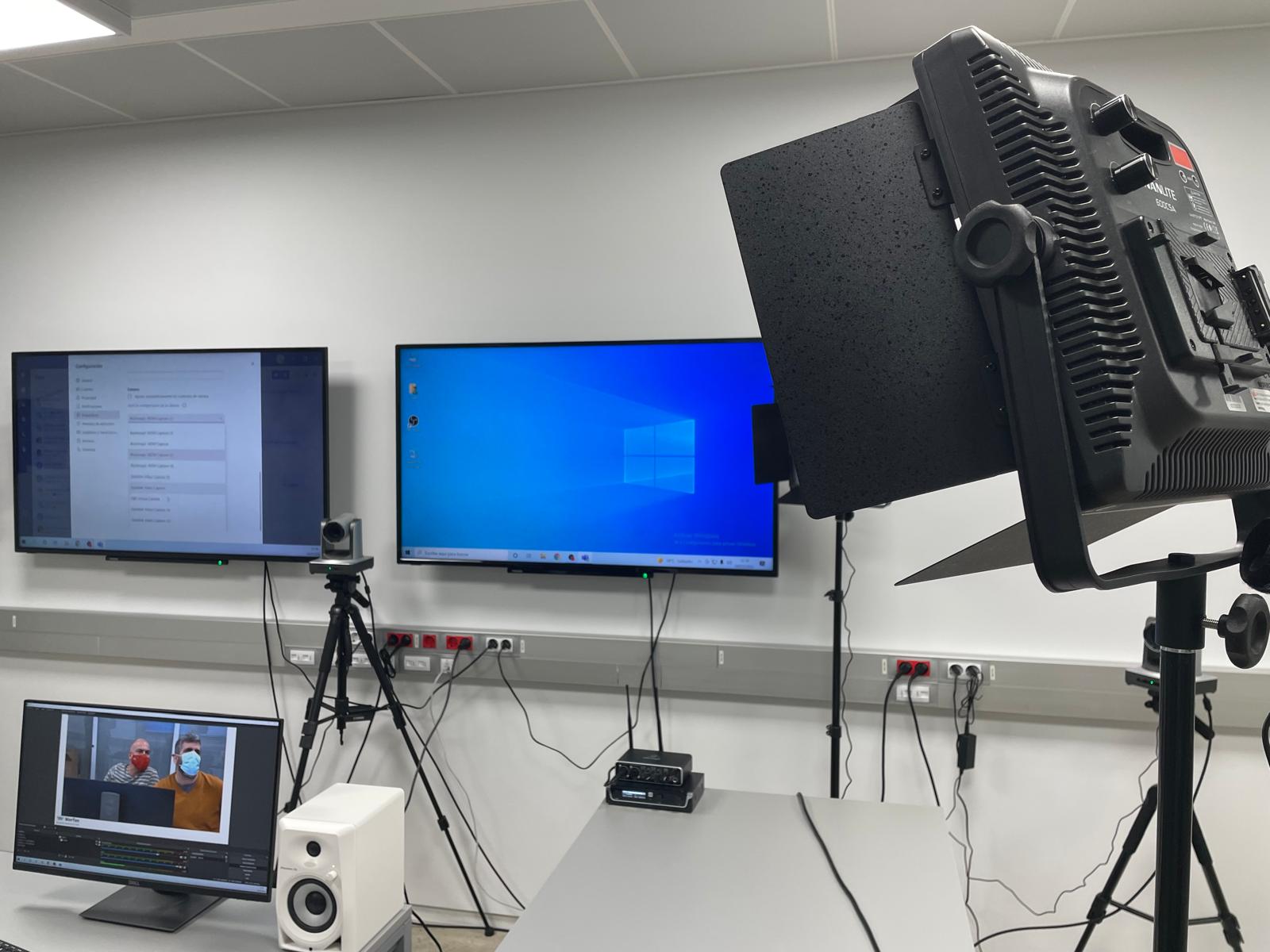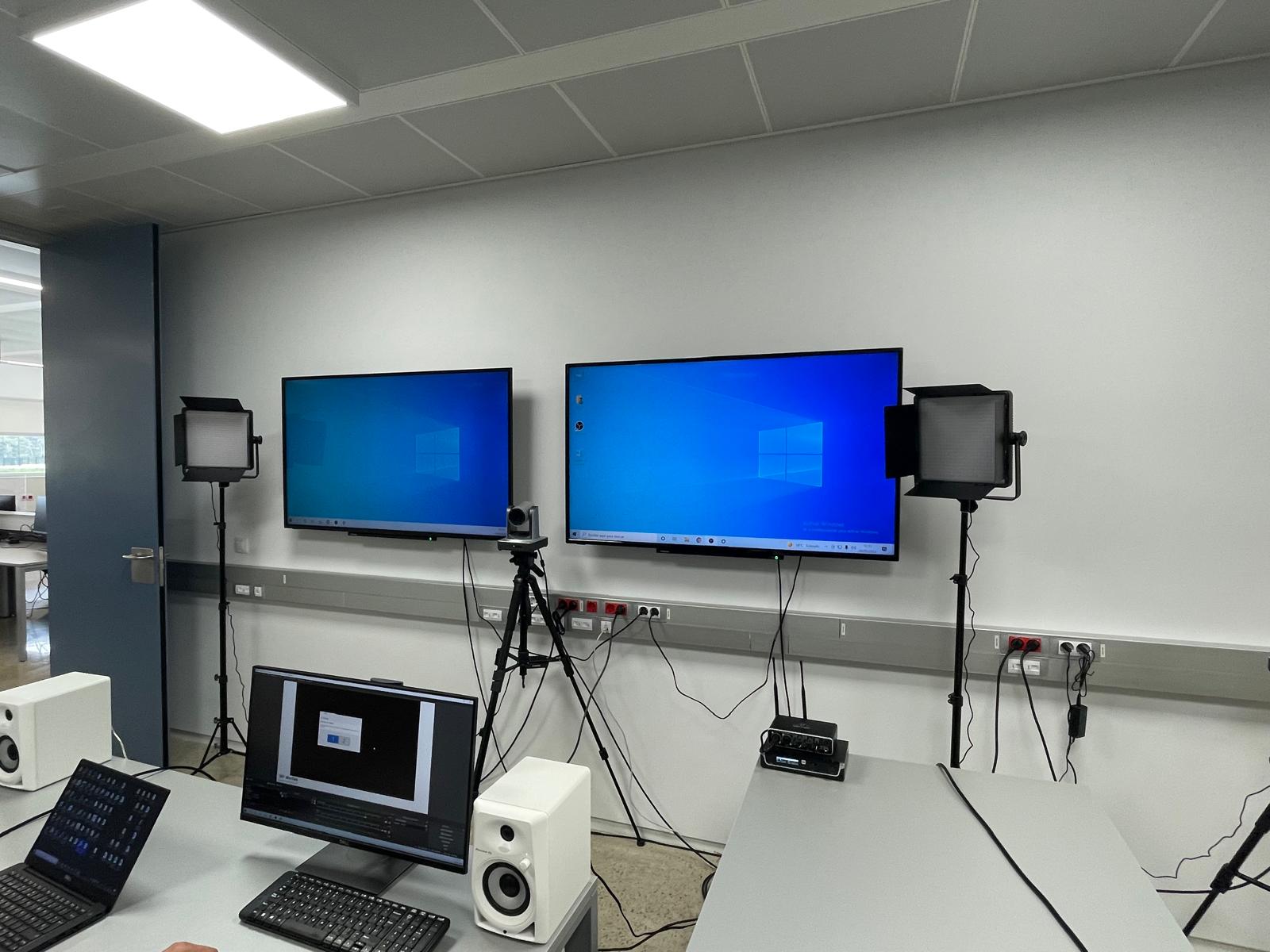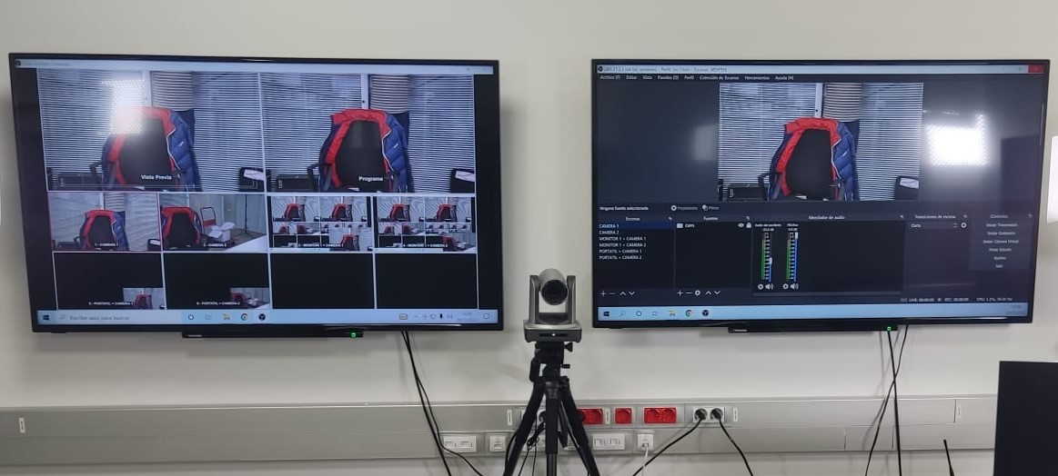 Otros equipos de imagen fueron dos televisores de 55 pulgadas Toshiba 55 UL306DG Ultra HD 4K. Ambos colgados de la pared con soportes Fonestar. Uno  de los televisores iría destinado a la visualización de los diferentes planos de las Cámaras PTZ Minrray. La segunda pantalla se reproduciría el contenido de la plataforma de videoconferencia escogida, en este caso principalmente Zoom.