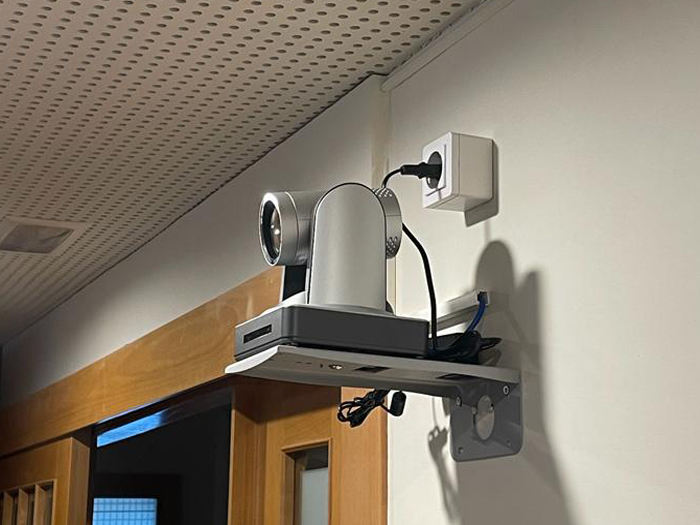 Inicialmente, el sistema de la sala para videoconferencias estaba formado por varias cámaras de seguridad domésticas repartidas por la sala conectadas en red. Estas fueron sustituidas por una única cámara PTZ Minrray.