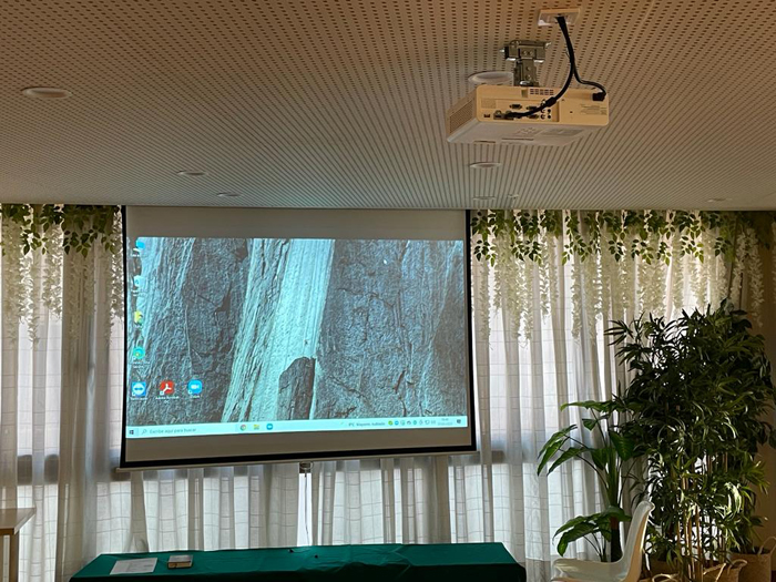 Imagen recibida: La plataforma escogida nos envía una imagen desde el otro lado de la videoconferencia al ordenador. A través de la conexión HDMI el proyector recibe la imagen y la proyecta en la pantalla.