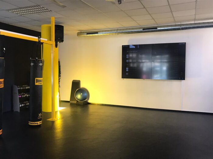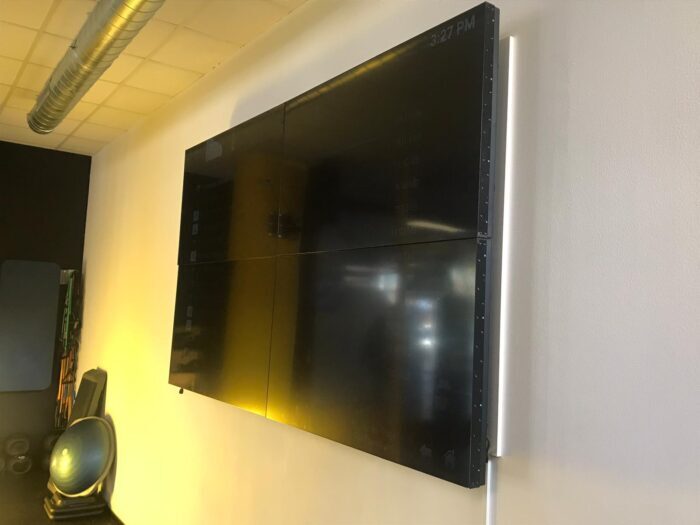 En este caso la sustitución del proyector por uno más potente, aunque fuera la solución más económica no habría llegado a dar el resultado esperado. Por lo tanto, el cliente se decidió por la opción de un Videowall, dando una imagen de tamaño 2,45 metros por 1,37 metros.