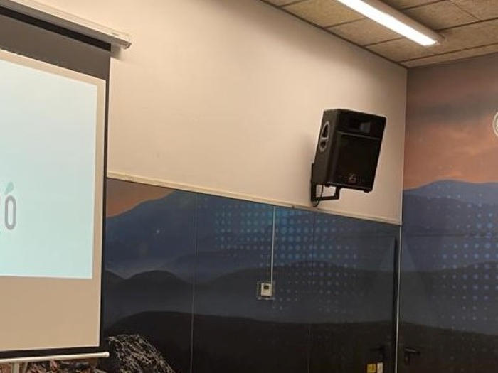 El primero, se han sustituido dos altavoces de gran tamaño, de 12 pulgadas,  antiguos y sobredimensionados para las características de la sala. Por dos altavoces de LD Systems modelo Stinger 8 de 8 pulgadas y de 250 W de potencia cada uno. Cajas acústicas modernas, fiables y de calidad. Además los soportes de pared orientables han permitido afinar la instalación.