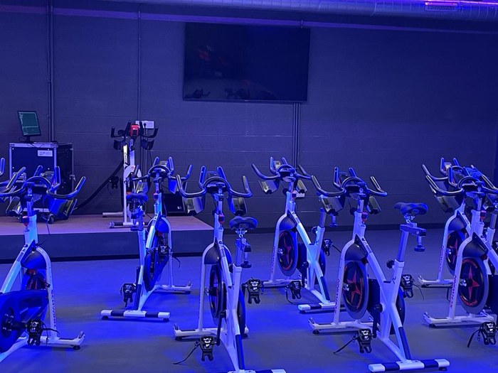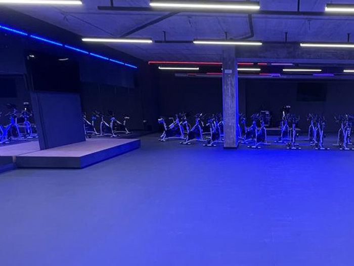 La primera de las tres salas que se ha preparado y equipado para Energie Fitness es la sala polivalente. Esta sala ha sido preparada tanto para acoger Sesiones de Spinning o Spinnergie como para albergar cualquier Clase de Actividades Dirigidas. Esta sala consta de dos escenarios, uno en cada lado y de dos pantallas, una de 50 pulgadas y otra de 75, para reproducir material virtual de la plataforma Amplifit así como información de los deportistas.