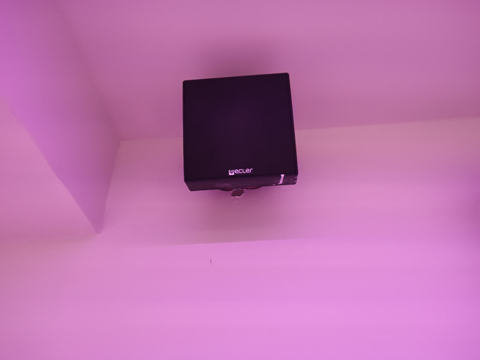 La instalación de los equipos de sonido para la megafonía en la zona de Fitness y baños se ha hecho con 12 altavoces ECLER AMBIT 106 repartidos de forma homogénea por todos los espacios. Se ha complementado la instalación con un amplificador Monacor PA-900. Este se ha situado en el rack de la sala de comunicaciones, junto a los equipos y sistemas de red, seguridad y control de acceso. Además para la emisión de comunicados generales, se ha montado un micrófono inalámbrico LDU3088PH. Situado en la zona de recepción.