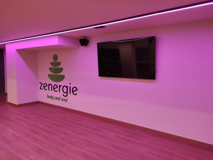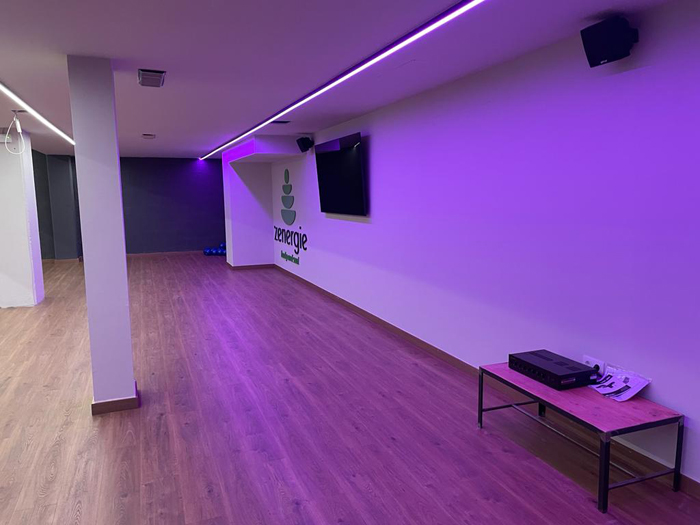 La tercera y última sala es la más tranquila de todas, llamada Sala Zenergie. Está destinada a actividades dirigidas de Yoga y otras disciplinas afines. A diferencia de los otros espacios, en los que pretendemos transmitir a los deportistas un alto grado de intensidad, en este espacio se pretende transmitir una sensación de paz y tranquilidad.