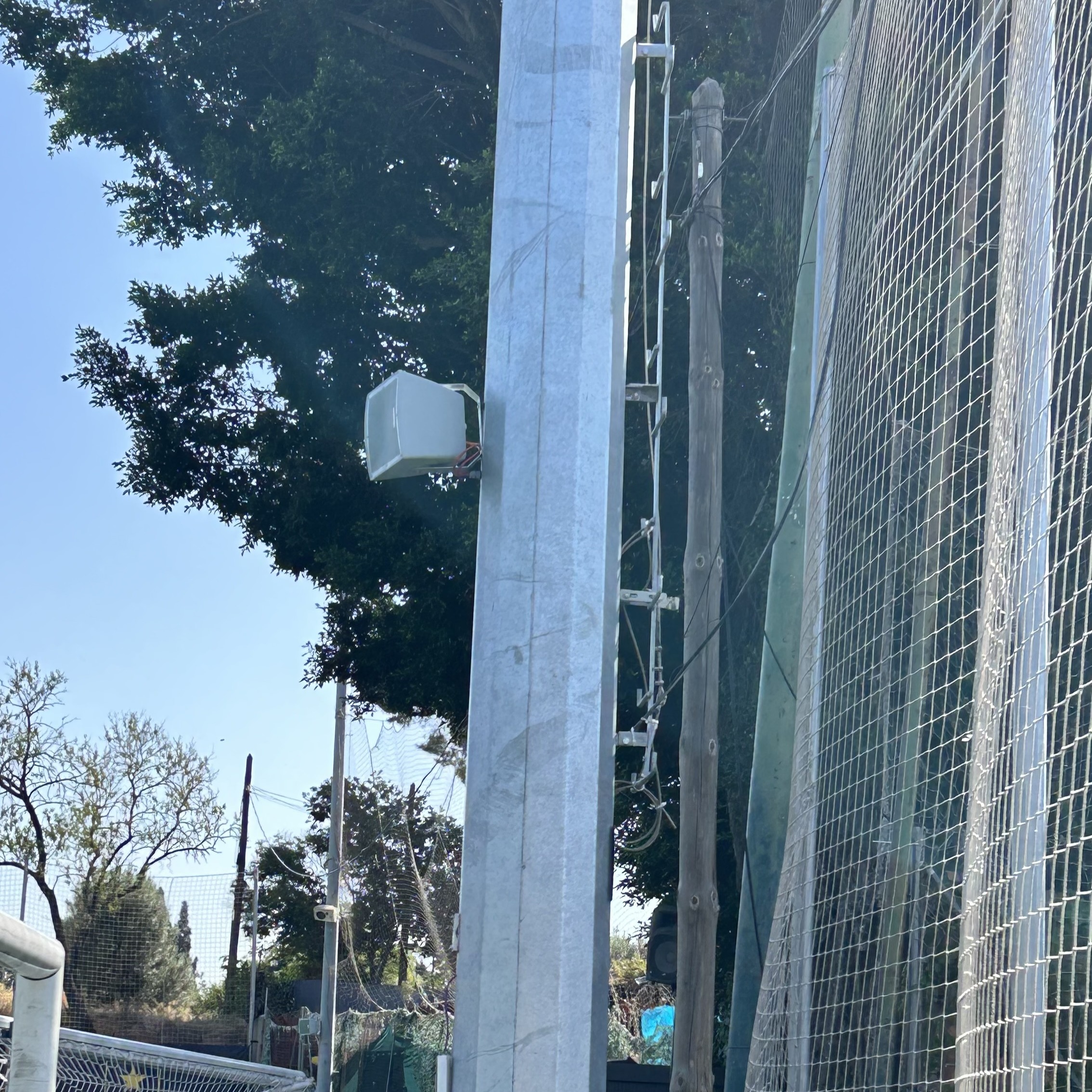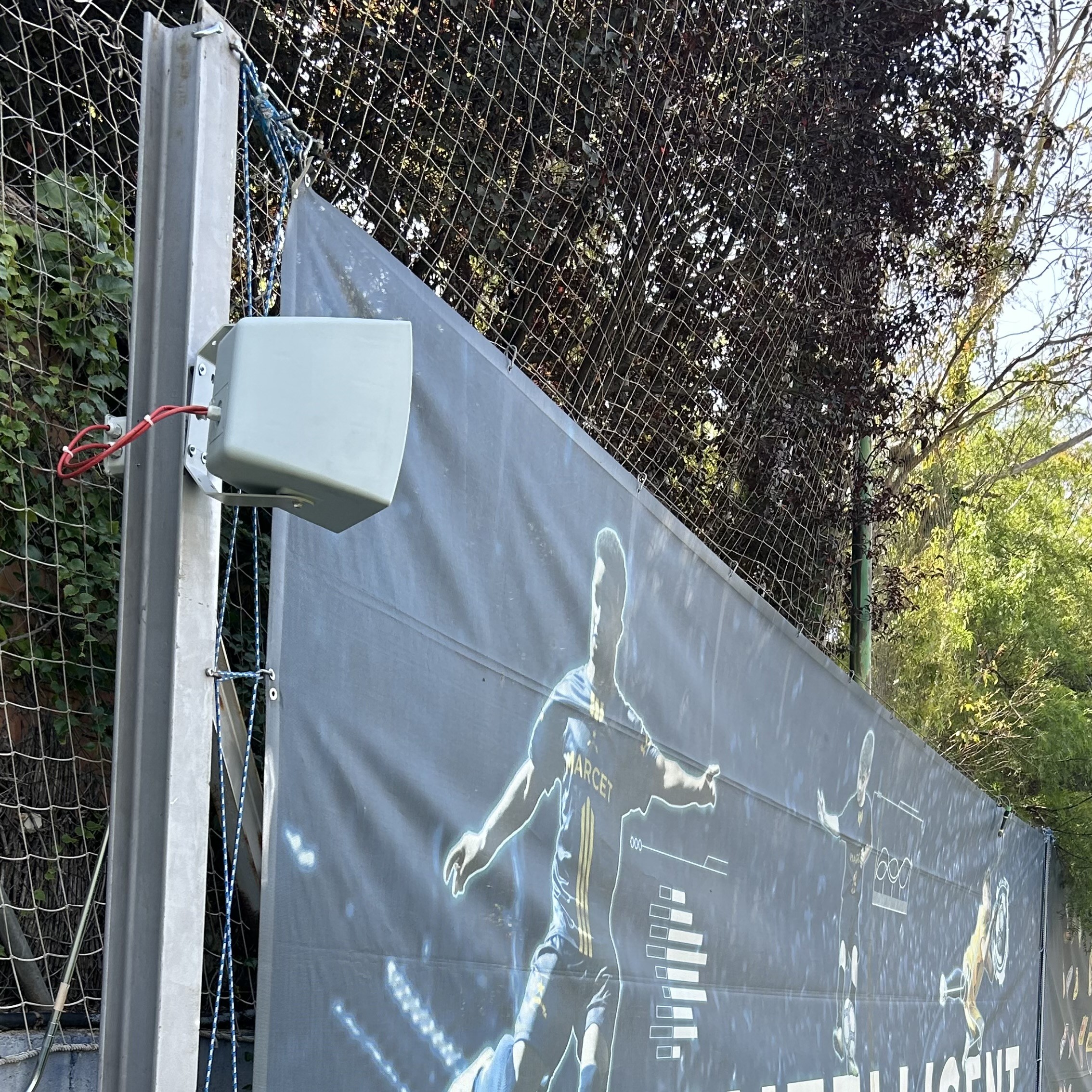 Para garantizar potencia y fiabilidad en exteriores, instalamos proyectores sonoros Ecler ECMP8 de 8″ y 150 W, con una dispersión de 100º x 100º y protección IP56 frente a condiciones climáticas adversas. Estos altavoces se colocaron a 4 metros de altura en las torres de iluminación, logrando una cobertura uniforme y una excelente claridad de sonido en cada campo de fútbol.