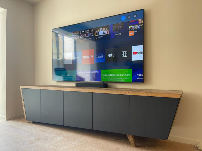 El primer espacio, el salón, se equipó con un televisor de 85” Samsung QLED 85”QE85Q60BAUXXC con un soporte de pared Fonestar STV-636N.