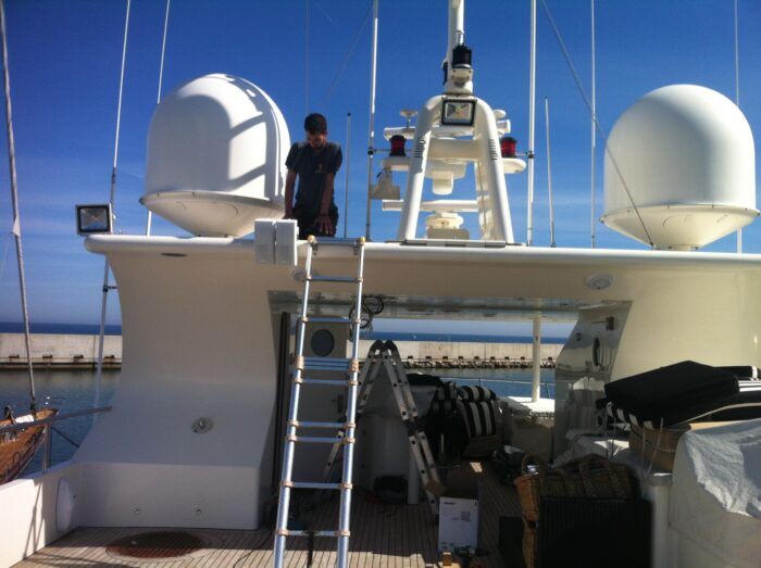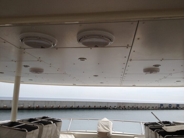Instalaciones Audiovisuales para Barcos. Sonorización de un yate de 30 metros con equipos de audio aptos para la náutica. Resistentes al agua y otros factores que se puedan dar durante la navegación en largas travesías.