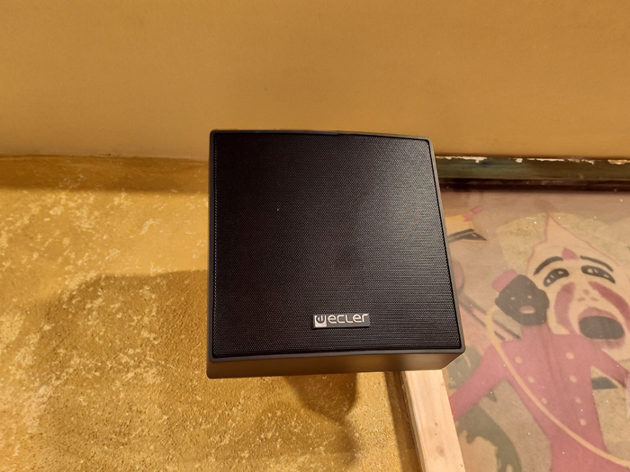 La instalación de sonido la forman 14 altavoces Ecler Ambit 106 y 2 altavoces Ecler Ambit 103. Estas cajas acústicas están repartidas de forma homogénea, las Ecler Ambit 106 sonorizan las dos plantas o espacios principales y las Ecler Ambit 103 sonorizan la escalera de conexión y los baños . Se ha dividido el local en dos zonas de sonido, pudiendo escuchar en la planta superior contenido musical distinto al de la planta inferior.