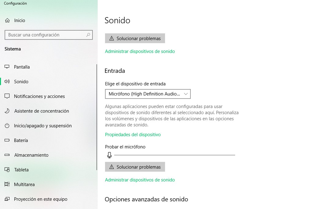 Se debe tener en cuenta que al conectar el audio del equipo de sonido al PC, es necesario configurar el PC para desconectar el micrófono interno para evitar que éste se mezcle con el audio proveniente del equipo de sonido de la sala. Obteniendo así una buena calidad de audio. Seguidamente identificar el nuevo micrófono y configurarlo.